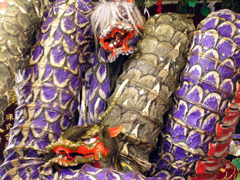 | 「大蛇」 その1 その2 その3 ![]() いかにも須佐乃男命らしいすばらしい神舞でした。 ![]() じぃ、ばぁ、姫の登場です。 ![]() いかにも毒酒の入っていそうな樽ですね。 ![]() お幸せに・・・。の前に須佐さんがんばって大蛇を退治しちゃんさい! ![]() なんと良いポーズをとっちゃんさる方ですなぁ。^^; ![]() 大蛇の登場です! ![]() この紫の大蛇の頭さばきの元気が良いこと!!迫力満点でした! ![]() うおーいかにもへびって色のお面ですね。 ![]() 大蛇が寝たかを調べております。 ![]() 僕も須佐を舞っていて思うのですが、 この刀をぬくシーンはどうやって決めればよいのか・・・。 ![]() 格闘中でございます! ![]() よく考えてみると、紫の大蛇ってあんまり見ない色ですね。と思うのは僕だけ? ![]() 今度美川西保存会さんの神楽を見るときは 、もっと長時間見させていただきたいと思います! つまり夜明け舞を見に行かせていただきたいと思います! お疲れ様でした。 その1 その2 その3 |