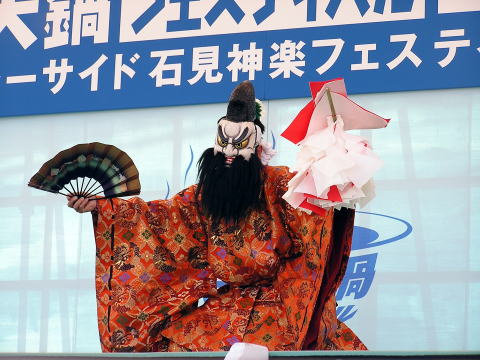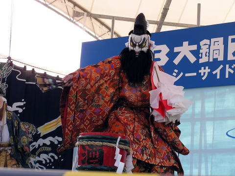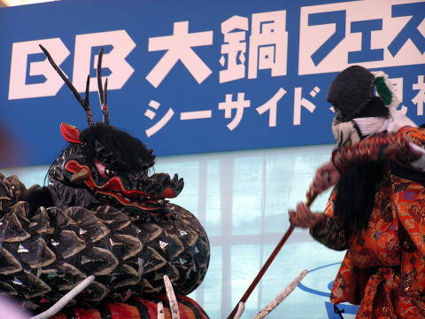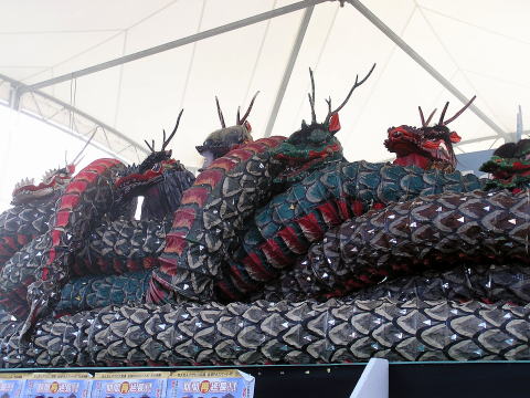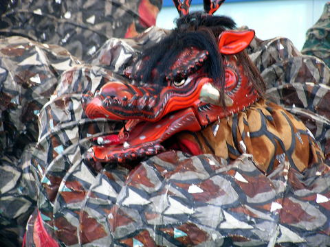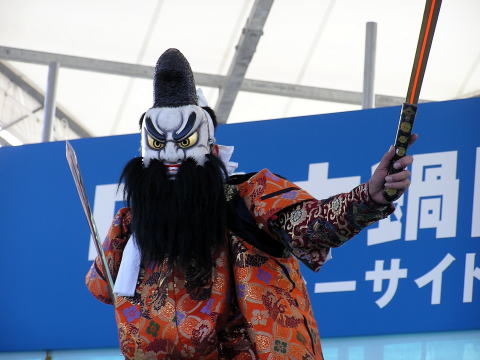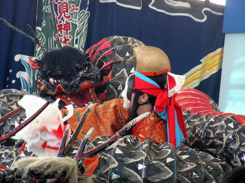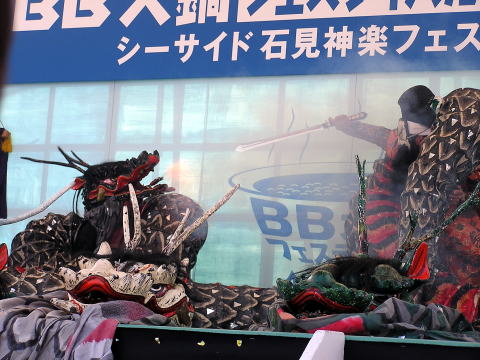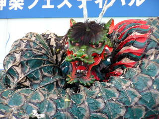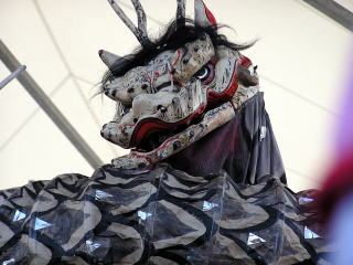 須佐乃男命です。 大蛇が出てまいりました。今日は6頭でした。 このシーンは圧巻です!!! 上府さんの蛇頭もカッコイイですよ! 稲田姫ピーンチ! 上府社中さん、気合の入った舞をありがとうございました。(´∀`) その1 その2